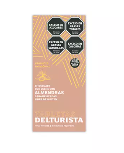 Tableta de 85 gramos, chocolate con leche con almendras caramelizadas. Libre de gluten.